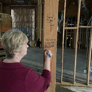 We met at the church building site to sign our names with sharpies on the 2x4s holding the church up before the sheetrock was installed. Here are some photos we gathered for this once in a lifetime congregational event!